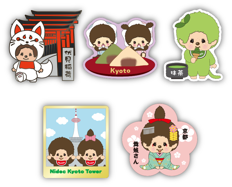 京都の名所やおいしいものとモンチッチたちがとてもかわいらしいデザインです。