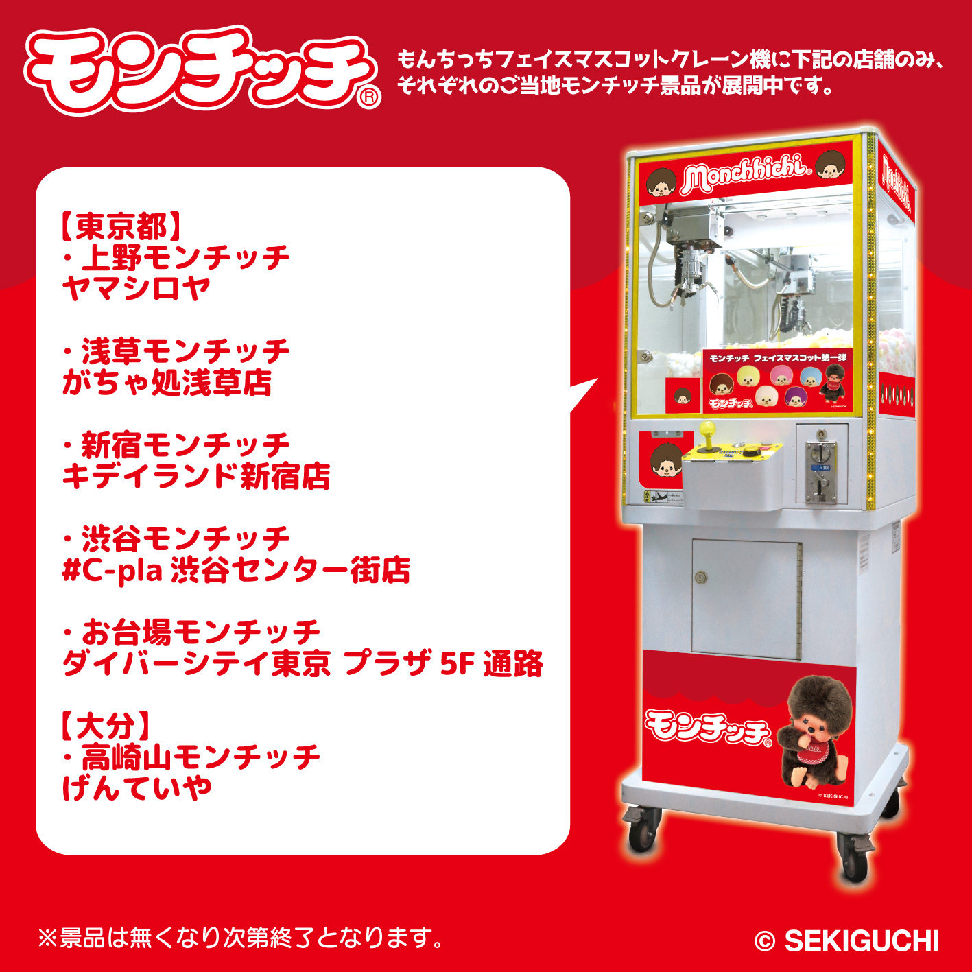 モンチッチのクレーンゲーム機にご当地マスコットが登場です!