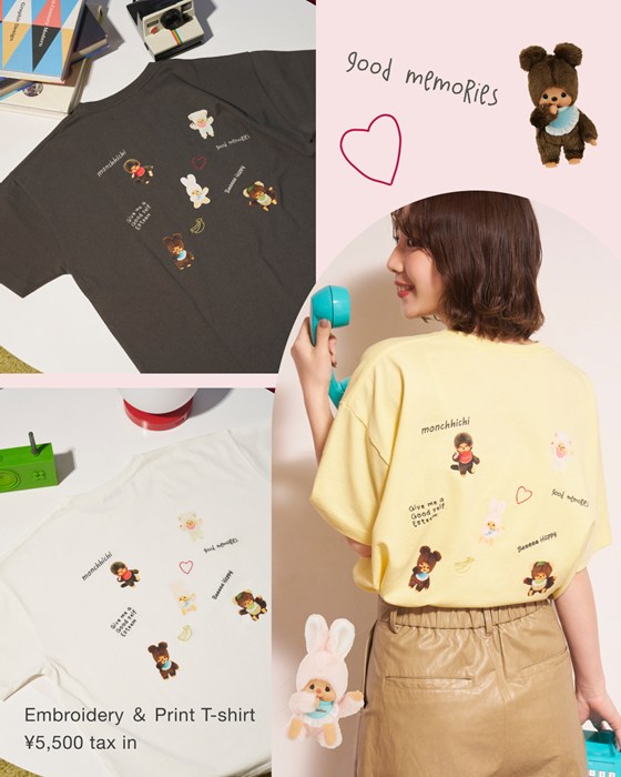 モンチッチ刺繍×プリント散らばしTシャツ