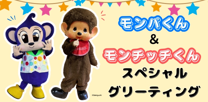 ※モンチッチくん、モンチッチちゃんのどちらかが出演いたします。
