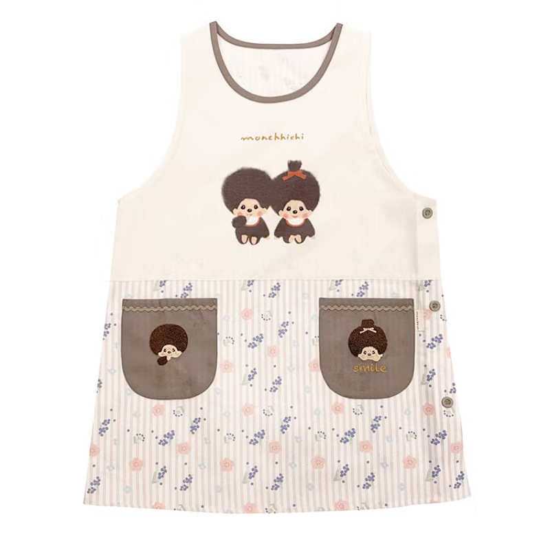 ワンピースのようにすぽっとかぶるだけで着られるらくちんなエプロンです。